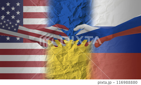 Russia and the USA are trying to get their hands on Ukraine, in the background a crumpled map