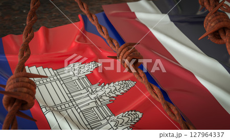 The Thailand and Cambodia flag for Land crisis concept 3d Rendering.