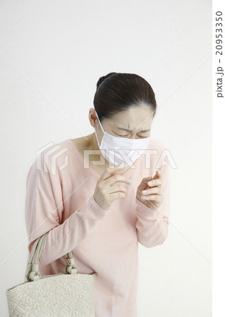 アレルギー花粉症マスクをした女性40代ミドルエイジ