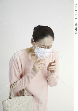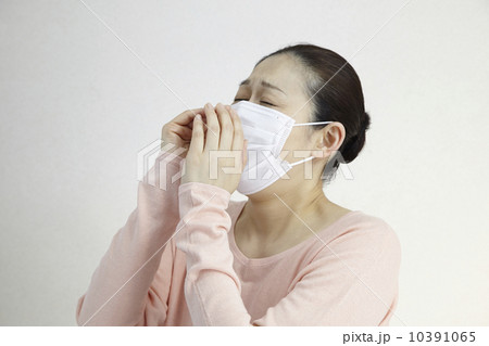 マスク女性40代アレルギー花粉症くしゃみの瞬間