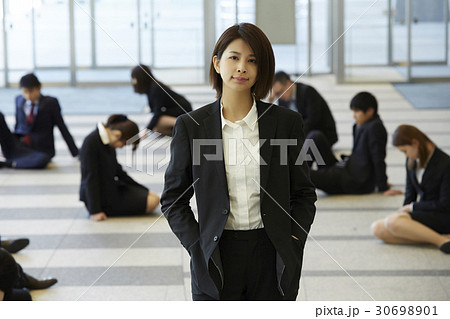 若い世代の代表として強烈なリーダーシップを発揮する目力の強いたくましい女性白紙コピースペース