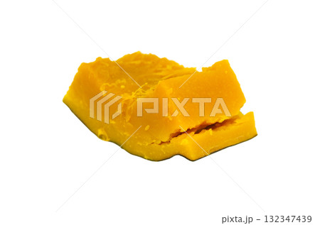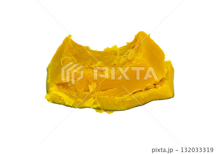 【切り抜き透過背景素材】煮くずれ寸前まで塩茹でした角切りのカボチャ