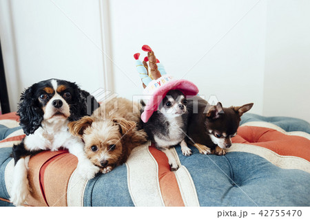 誕生日のお祝いをしている犬たち