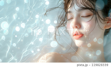 のんびり・ゆったり:朝日を浴びベッドで寛いでいる若い女性