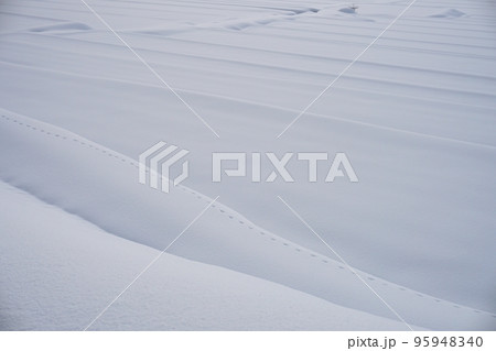 雪に覆われた山形県朝日町くぬぎ平棚田の畦道