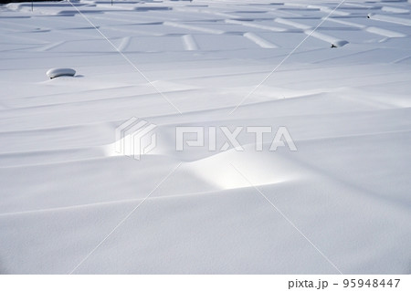 一面雪に覆われた朝日町くぬぎ平棚田の朝 Ver1
