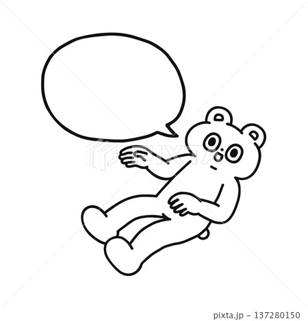 ふんわり浮くゆかいなクマと吹き出し 線画