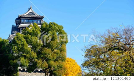 熊本城 美しい晴天空 天高く 夕焼けの輝き風景 2020年