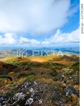秋の栗駒山登山(栗駒山~秣岳:須川湖・秣岳方面の眺め)