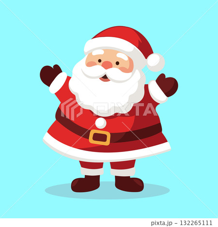 プレゼントの袋を持って手を振るクリスマスのかわいいサンタクロース
