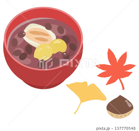栗入りぜんざい・紅葉・イチョウ・栗のイラストセット