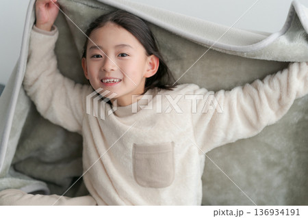 朝方の空気が涼しくなって、布団にくるまる子ども