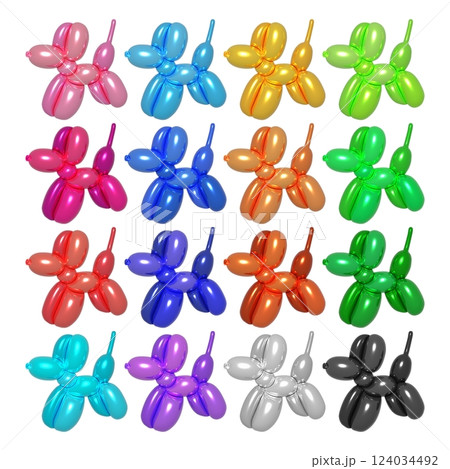 カラフルでリアルな3Dバルーンドッグのイラストセット