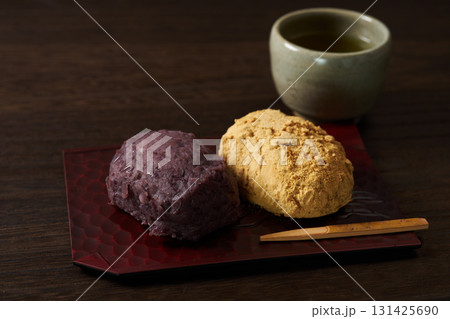 おはぎ 三色おはぎ 黒背景 お茶