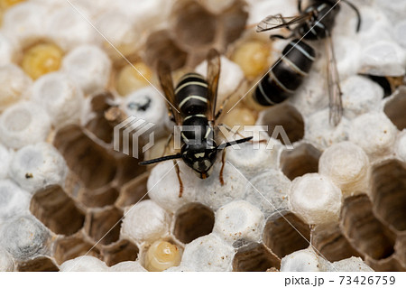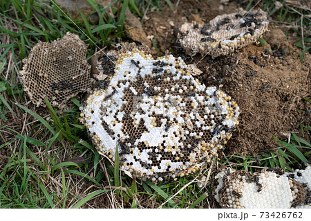 クロスズメバチ 巣の駆除 繭を作る幼虫