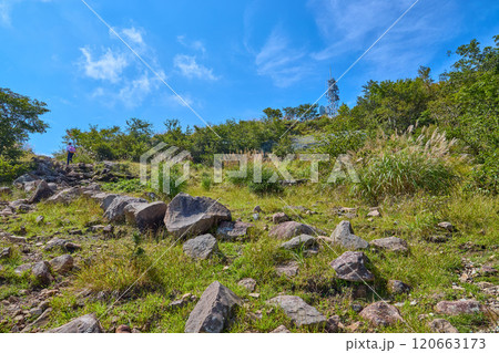夏の群馬県 赤城山(地蔵岳)の大沼側の山頂間近から山頂を見る