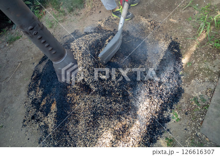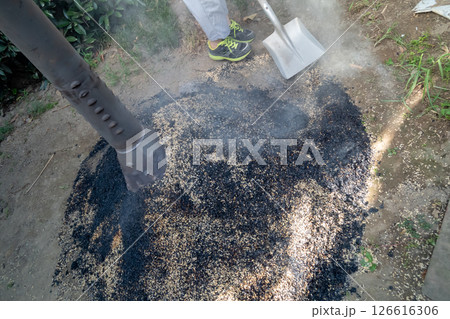 もみ殻の蒸し焼き