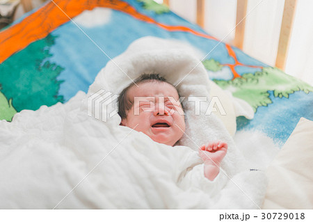 泣いている赤ちゃん 布団