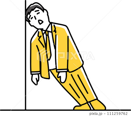 壁に寄り添いぐったり疲れている男性