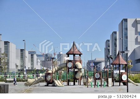 東京 江東区豊洲の都市風景 豊洲六丁目第二公園とタワーマンション