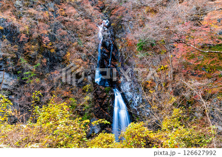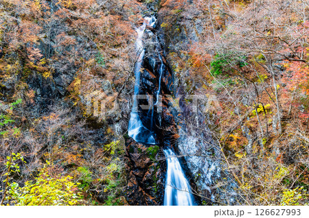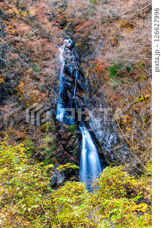 群馬県みどり市 小中川にかかる小中大滝 袈裟かけ橋を渡って展望の良いところから撮影