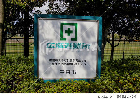 三田市 駒ヶ谷運動公園周辺に建てられた広域避難所を示すの看板