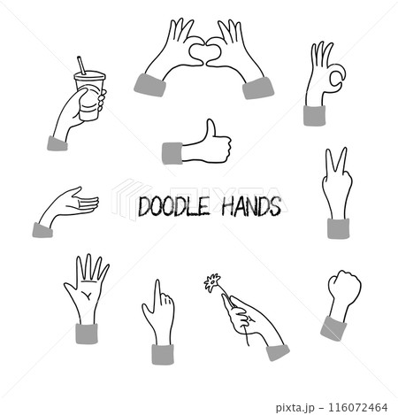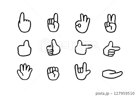 いろいろな手のポーズのイラストセット 指差し ピース オッケー 注目 いいね 手描き