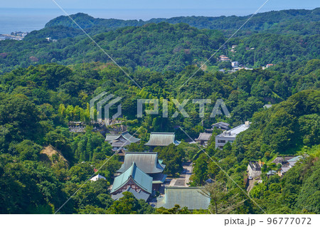 秋の鎌倉市の建長寺半僧坊の相模湾見晴台から南西側眺望(源氏山,相模湾など)