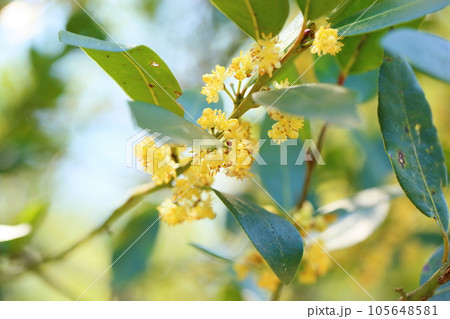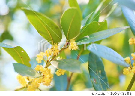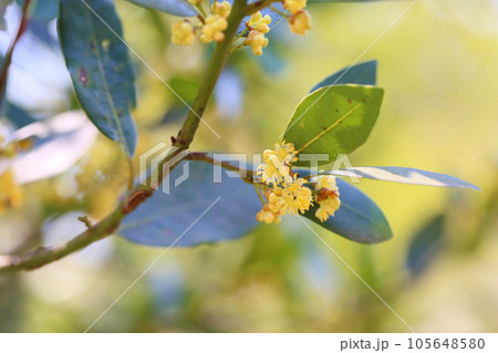 開花期の月桂樹(ゲッケイジュ)学名:Laurus nobilis