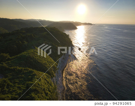 禄剛崎の美しい夕日 石川県珠洲市(ドローンによる空撮)
