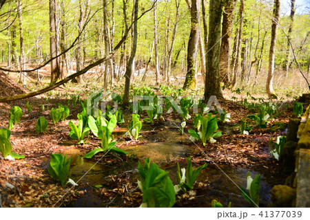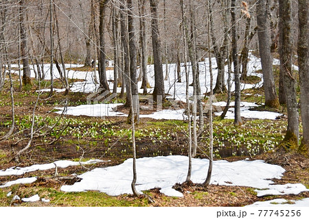 長野県 奥裾花自然園 水芭蕉咲く早春のこうみ平湿原付近 2021年4月30日