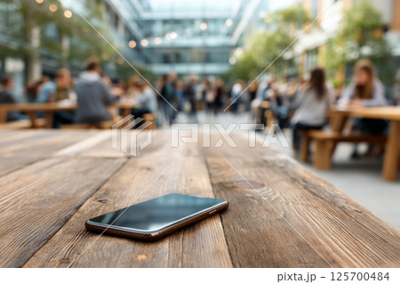 Autumnal Picnic Table in Misty Forest A Serene Landscape