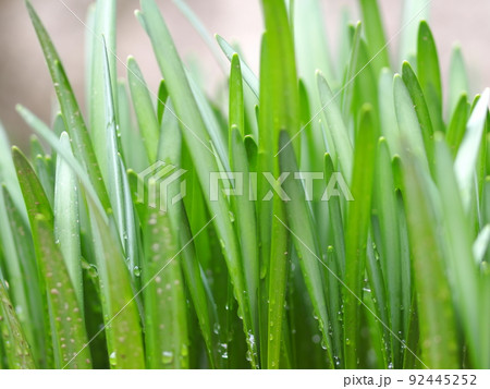 雨上がりの畑のニラの葉