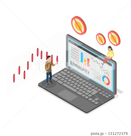 3D Isometric Flat Vector Illustration of Business Bankruptcy, Financial Insolvency In The Business World. Item 1