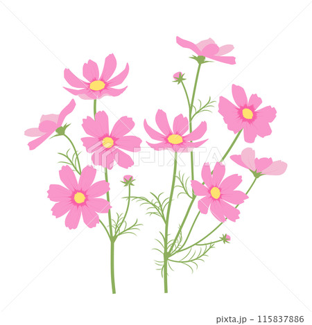 カラフルな赤、ピンク、白のコスモスのイラスト