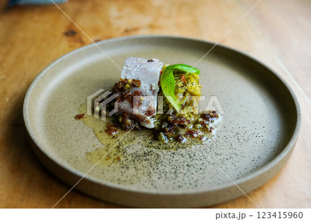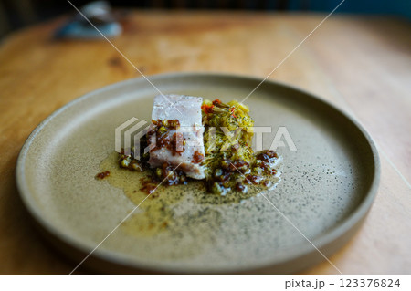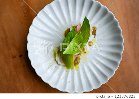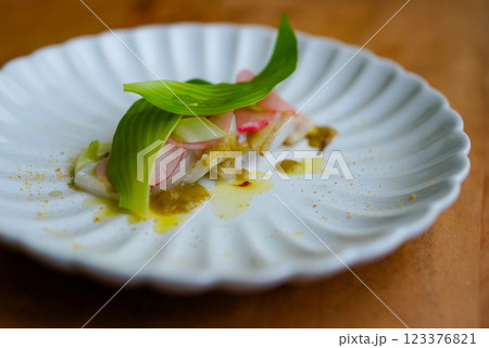 サワラ、キャベツ、蕗のとう、白身魚、春の味覚、フレンチ、和食、創作料理、ガストロノミー、グルメ、レス