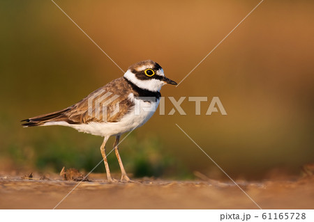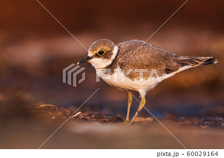 Little ringed plover, charadrius dubius, at sunrise with copy space