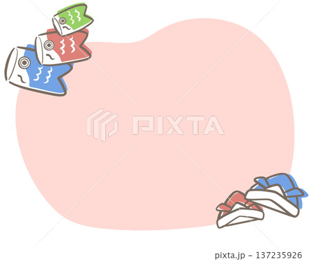 鯉のぼり 水彩 もくもく フレーム ピンク