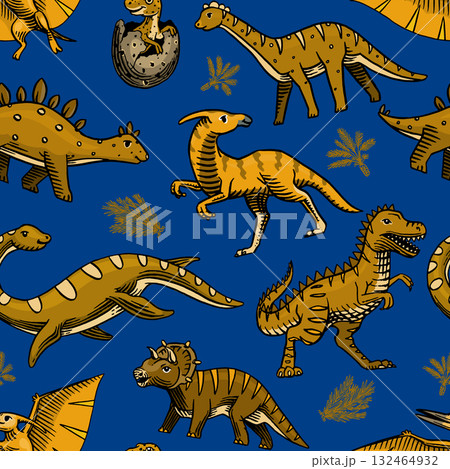 Cartoon jurassic dinosaurs seamless pattern for kids and boys clothing. sketchy Hand drawn
