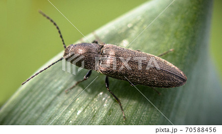 Close-Up of a Click Beetle Resting on a Vibrant Green Leaf