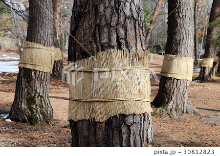 こも巻き 菰巻き 松の木 公園 12月 素材