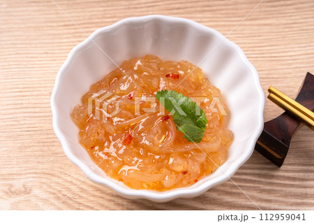 中華クラゲときゅうりの酢の物縦位置俯瞰