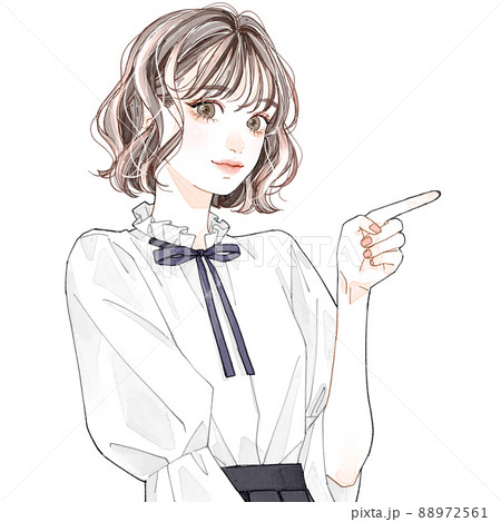 髪の長い女性ー指をさす女性ーアイコンシンプルベクター素材