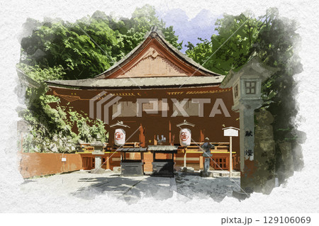 水彩画風 こんぴらさん 奥社 厳魂神社 香川県琴平町