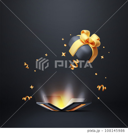 3D Open Gift Box with Golden Confetti.