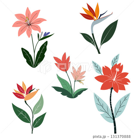 Tropical Flowers and Exotic Plants Illustration