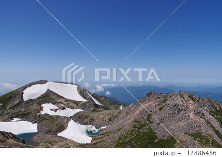 白山 御前峰からの展望 大汝峰 剣ヶ峰と池