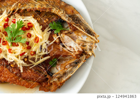 Fried Sea Bass Fish with Fish Sauce and Spicy Salad