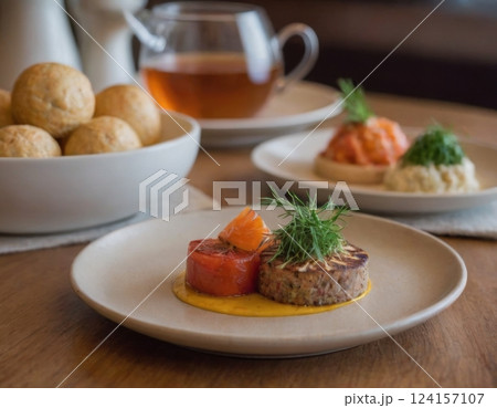 ヘルシーなランチや朝食の水彩イラスト Generative AI