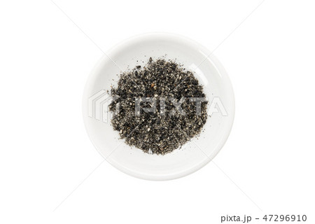 すり鉢で胡麻をする工程 俯瞰撮影 白背景